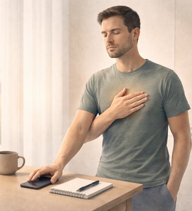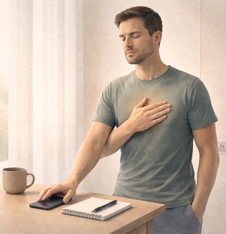 Respiração 4–2–6 para presença no corpo e clareza mental.